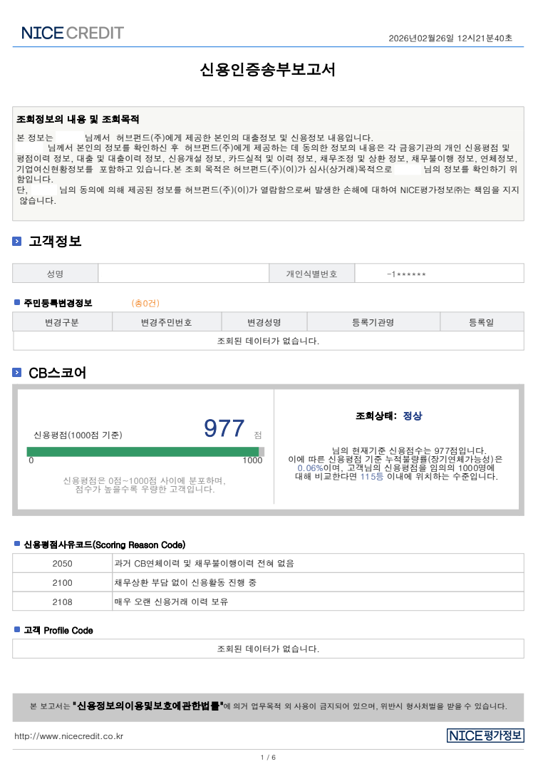 ◎ 신용정보 확인 : NICE 신용정보 조회