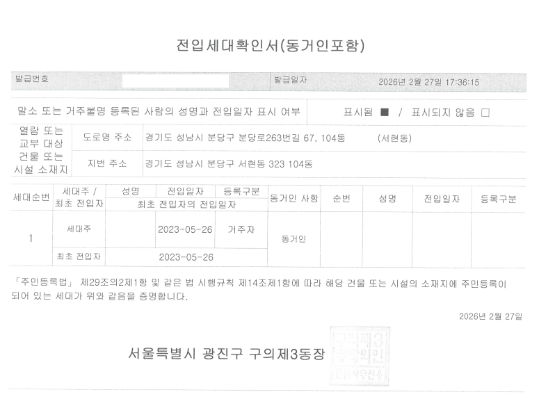 ◎ 권리관계 확인 : 전입세대 열람원, 국세납세증명서